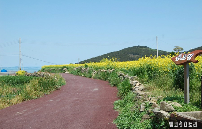 다음 날, 숙소를 나선 걸음이 신흥리 주변을 무목적으로 둘러보고 있어요. 유채꽃 흐드러진 청산의 한적한 길이 끝도 없이 이어집니다. 바람에 실려온 달콤한 꽃향기가 후각을 자극하면 만개한 유채꽃은 그 모습이 유난히 당당하여 시선을 한 번에 사로잡습니다. 화려함을 품은 꽃모가지가 유난히 빳빳한 유채꽃 집단이 봄날, 청산의 푸른 하늘과 대비된 풍경은 그 자체로 장관입니다.