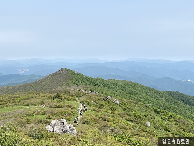 올해 소백산 철쭉제 축제기간(5월 24일~5월 26일)에 방문했는데 5월 중순 갑작스러운 눈으로 철쭉이 제대로 피지 못해 제대로 감상할 수는 없어 조금은 아쉬웠지만, 비로봉에서 국망봉, 상월봉 구간의 능선이 생각지 못하게 너무나 아름다웠습니다. 자연은 언제나 예측할 수 없지만, 늘 새로운 아름다움이 있어 좋은 것 같아요. 철쭉은 보지 못했지만 탁 트이고 아름다운 능선길이 걷기도 보기도 좋은 곳이었습니다.