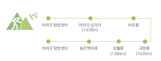 소백산은 다양한 등산코스가 있는데요, 이번에 소개할 코스는 봄철 철쭉 군락지를 감상하며 등산하기 좋은 어의곡, 비로봉, 국망봉 코스입니다.