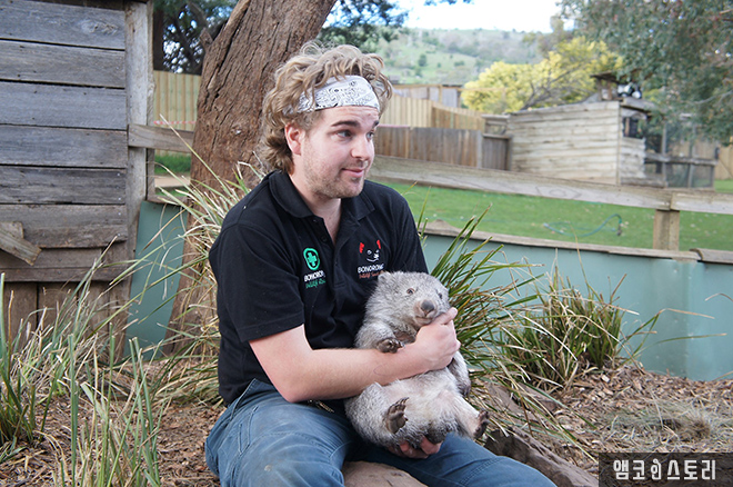 드디어 투어가 시작된다. 돌보고 있는 아기 동물들을 보여주고, 먹이도 주고, 동물에 대한 이야기를 들려주는 투어다. 잘생긴 호주 청년이 안내를 맡았는데, 자기 소개를 마친 후에 아기 웜뱃이 있는 우리로 갔다. 필자도 궁금하여 웜뱃이라는 동물에 대해 좀 자세히 알아보았다.
