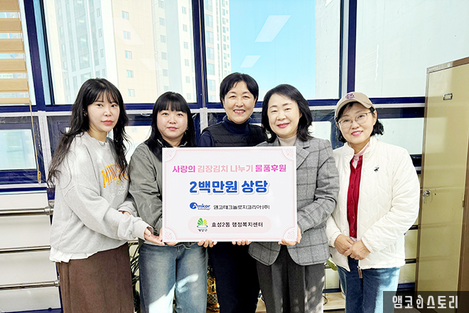 11월 21일, 앰코코리아 TEST사업장에서는 효성2동 행정복지센터와 새마을부녀회에서 주최하는 2025년 저소득 및 독거노인 김장김치 나눔행사를 위해 매월 사원들로부터 모인 급여우수리 200만 원을 기부했습니다. TEST사업장은 올해로 11년째 김장김치 나눔행사에 후원을 이어오고 있습니다. 효성2동 행정복지센터에서는 기부금으로 예년과 같이 250여 포기의 김장김치를 담가 관내 저소득 및 독거노인 등 복지 대상자에게 전달할 예정입니다. TEST사업장은 리더봉사회와 함께 어려운 이웃을 위해 앞으로도 계양구 지역사회 주민들을 위한 나눔의 실천을 이어갈 예정입니다.