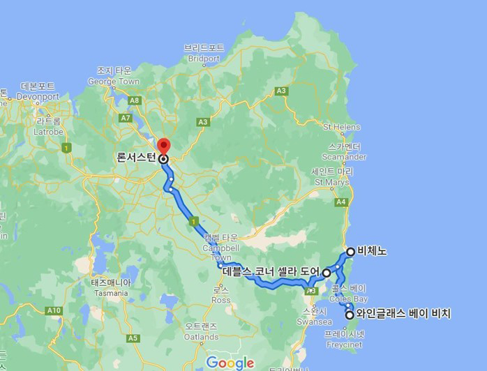 (지난 호에서 이어집니다) 와인글래스 베이(Wineglass Bay) 트래킹을 마친 후, 원래는 St Helens 위쪽에 있는 파이어스 만(Bay of Fires)의 붉은 바위 해변을 보러 가려 했으나, 와인글라스 베이에서 생각보다 시간이 많이 지체되어 여행 경로를 수정했다.
