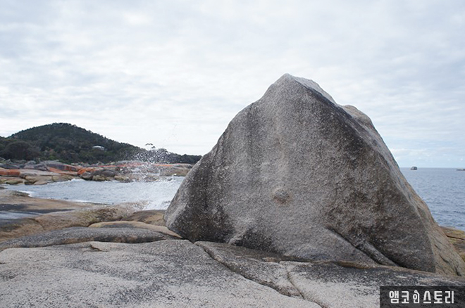 비체노 마을의 주차장에 주차를 하고 해변으로 걸어 들어가니, 널찍하게 펼쳐진 화강암 바닥 위에 마치 하늘에서 뚝 떨어진 것처럼 보이는 커다란 바위가 눈에 띈다. 저 근처에 블로홀(Blow hole)이 있다.